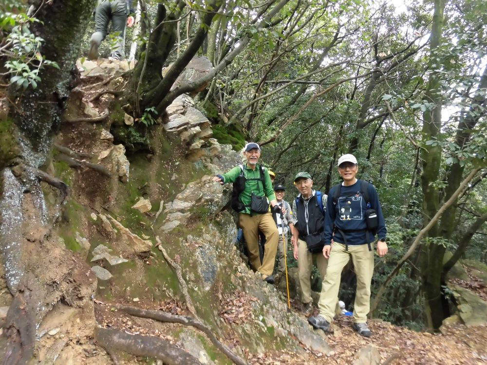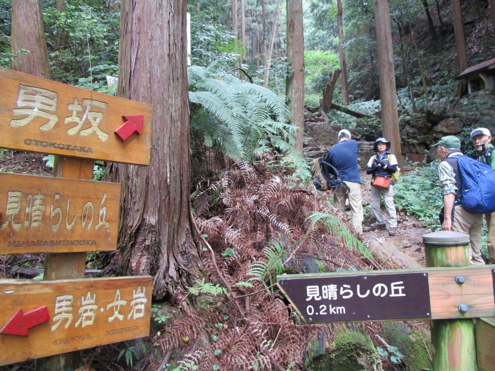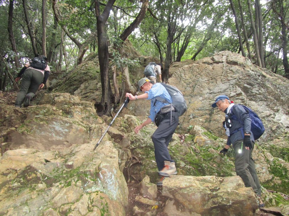 ◍登山口から少し上って鳥居を過ぎると男坂と女坂に分かれる。男坂を上り、短いながらも岩場のだいご味は味わうことができた。