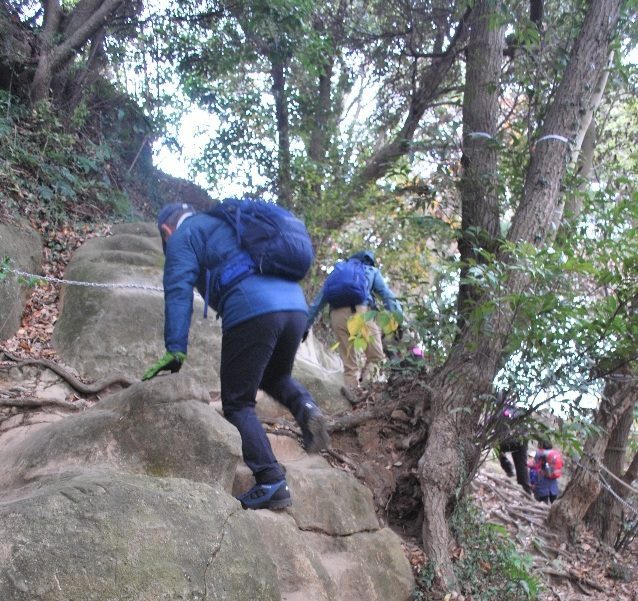 ◍山頂付近はロッククライミングの聖地としていられている。                       ◍「摩崖仏」から先の登山道は通行止めとなっていたため、迂回して下山する。                ◍下山後、追浜駅前の「三浦半島すし市場」でお寿司とアルコールを楽しんだ。