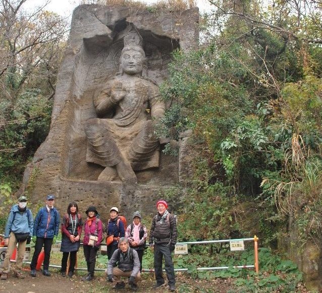湖北(7:06)=我孫子駅(7:14/7:19)発=品川(8:05/8:26)=金沢文庫(9:05/9:08)=神武寺駅(9:15/9:30)~神武寺(10:05/10:15)~鷹取山(11:10/10:20)~摩崖仏(10:35/10:40)~追浜駅(12:25)~三浦半島すし市場(昼食12:30/13:50)~追浜駅(14:09)=品川(14:52/15:17)~我孫子(16:07)