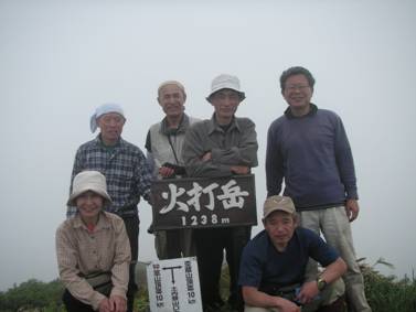 山頂小屋泊(4:40)〜神室山頂(4:45)〜小又山(7:50)〜火打岳(10:50)〜土内吊り橋(14:00/14:30)=我孫子(20:45)