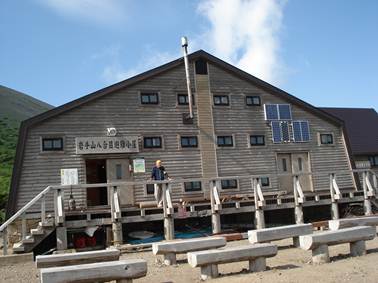 避難小屋は我々の他3パーティだけでゆったり利用できた。(避難小屋は平日利用するとよい)。