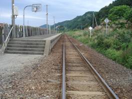 ![]() 【白神登山口駅(元 陸奥黒崎駅】 駅は無人駅、近くに「コンビ二」などはなし。 登山道へは写真を撮っている付近から線路を横断し、国道101号に出て右側へ行きます。 |