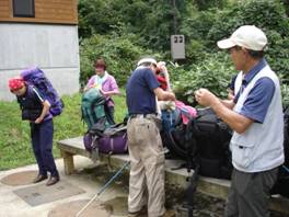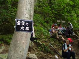 ![]() 【最後の水場】 「最後の水場」までに数ヶ所水場が有ります。 少し早い昼食にする、水場での食事は水の心配なくゆっくり食事。 |