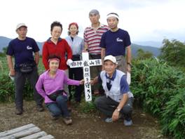 ![]() 【山頂で記念撮影】 今回の山行の最高峰。 |