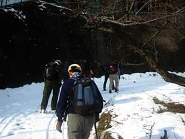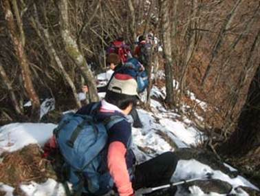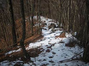 【痩せ尾根の雪道は滑り易い】