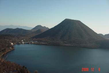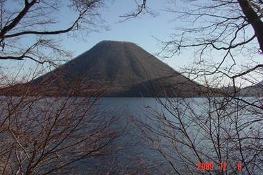 ![]() 歩き始めた湖畔から榛名富士を望む。 左右対称の山型が青空に映えて美しい。 |