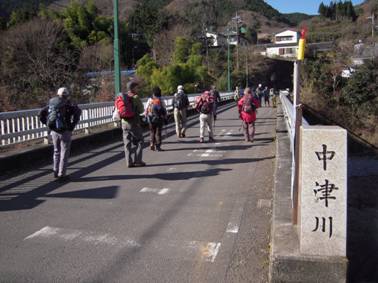 中津川に架かる橋を渡る