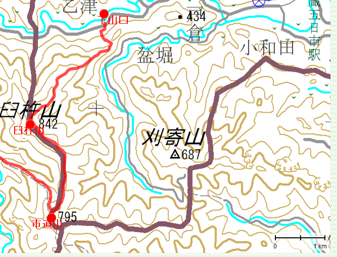 ■標高 市道山(795m) 臼杵山(842m)