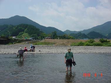 ![]() 【川の浅瀬を素足で渡るっきゃない!】 という事で、靴を片手に持ちながらなんとか中洲へと。 |