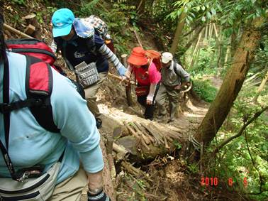 ![]() 古道はさすがに細い。馬一頭をやっと引いて通れるかどうか。 結構厳しい登り坂あり、階段あり。 |