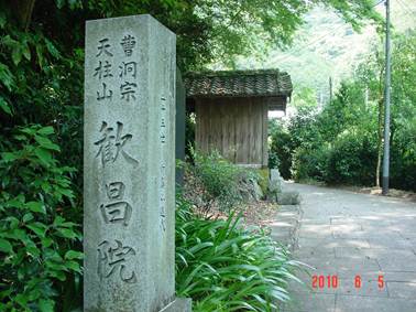 ![]() 丸子宿に続く林道を下って行くと立派な構えのお寺が。ここが歓昌院だ。 本堂の前にある池には錦鯉が群れていた。 |