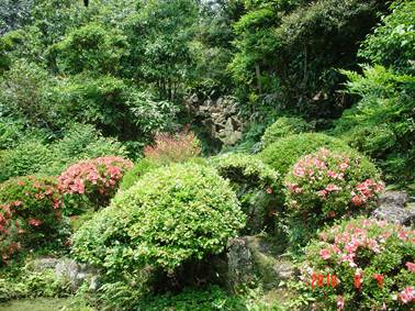 ![]() 池のある庭園に大振りのさつきがあり、 更に周りを大きな赤松が囲んでいる。 長い歴史と風情が感じられる庭だ。 |