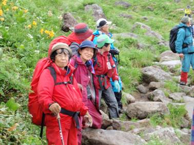 ![]() 【月山の下り】 ようやく雨があがりほっとするひと時です。 チングルマやニッコウキスゲがいっぱい。 |