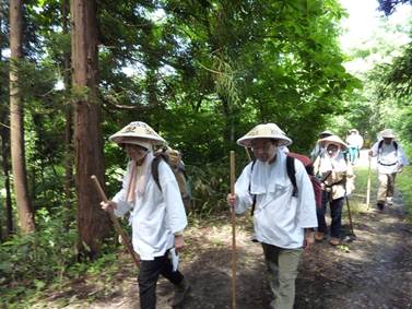 地元「あさひやま観光協会」主催の白装束、ガイド付の「湯殿詣」を全行程歩く。