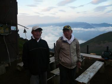 我孫子=小淵沢=観音平(9:15/9:25)〜雲海(10:22)〜編笠山(12:40/13:00)〜青年小屋(13:20/13:45)〜のろし場(14:25/14/35)〜権現小屋(15:22)(泊)