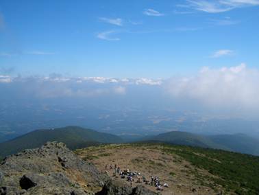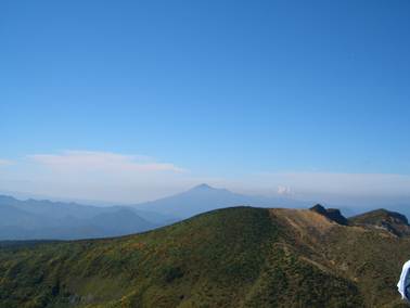 【安達太良山の山頂から 会津磐梯山を望む】