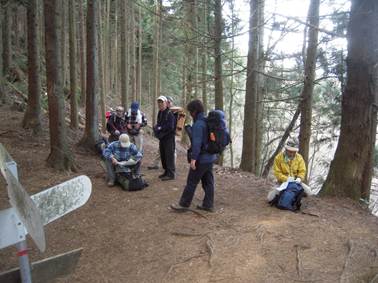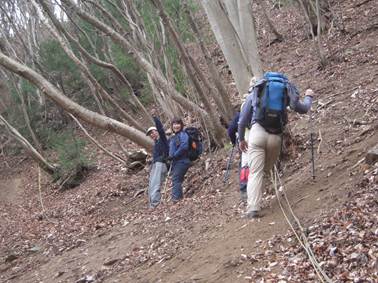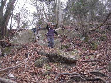 ![]() 【寺下峠への中間地点】 足場の悪い急斜面でも余裕のメンバー |