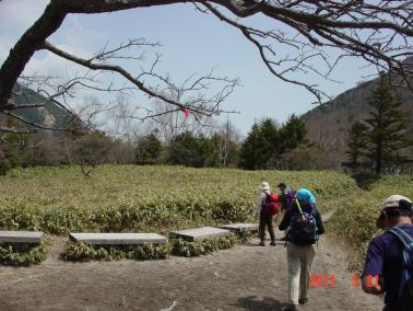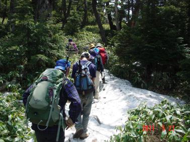 ![]() 【山王帽子山への中腹】 所どころに雪渓が残っていた |