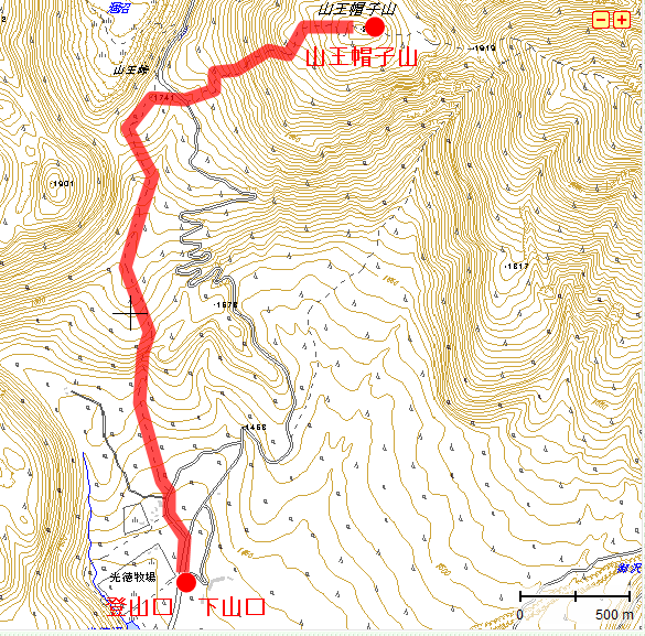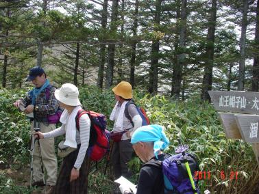 ![]() 【山王帽子山の山頂】 登山口から70分ほどで到着 |
