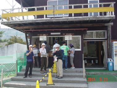 ![]() 【下山後のお楽しみ】 光徳牧場で人気のアイスと牛乳で疲れをいやす皆さん |