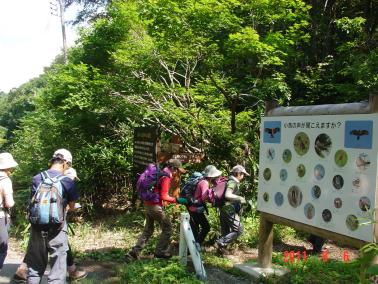 ![]() 【登山道の入口】 なだれ込むような勢いではいっていくメンバー。 |