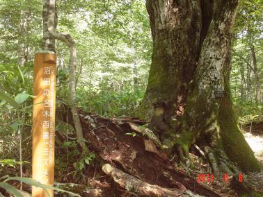 ![]() 【途中にあったミズメ巨木】 水のような樹液が出ることからこの名がつけられている。 |