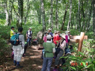 ![]() 【しばらくあるいた後、ブナ林の中で休憩】 |