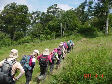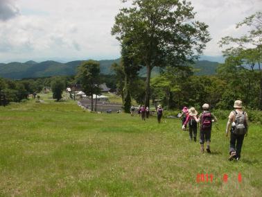 ![]() 【玉原スキー場の脇を登っていく】 日差しが暑い! |