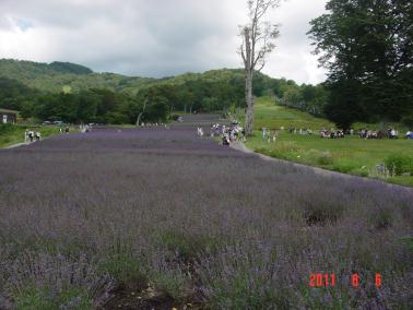 ![]() 【爽やかな風に揺れるラベンダー】 右後方が下山してきたスキー場。 |