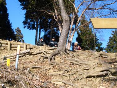 麻生山頂上での昼食時、お汁粉で冷えた体を温めた。