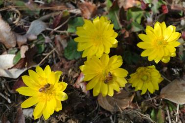 - 菜種梅雨の合間の晴れ。温かい日、日当たりのいい斜面に福寿草の花と蝋梅、紅白の梅と初春の花を満喫しました。