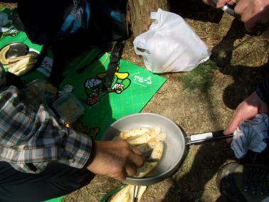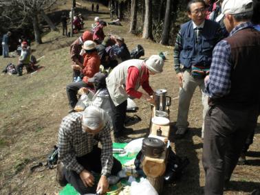 ![]() 【山頂手前の陽当たりがよい広場で昼食】 |