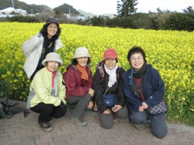 ![]() 【女性は花爛漫】 花摘み後、花に癒され満足の笑顔 |