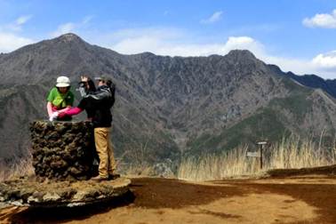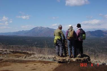 ![]() 【展望の広がる三湖台にて鬼ヶ岳、十二ヶ岳等を背景に】 |