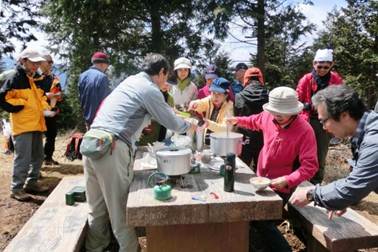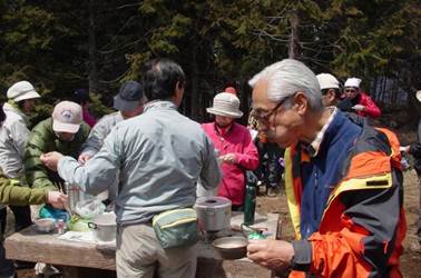 ![]() 【味よし、展望良しで山頂での豚汁昼食は格別でした】 |