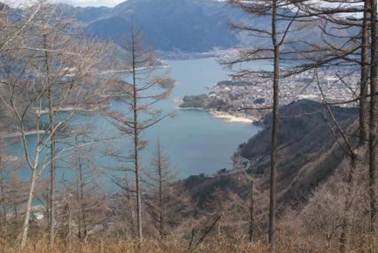 ![]() 【足和田山からすぐ下には河口湖が広がっていた】 |