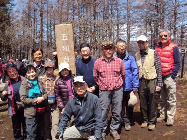![]() 【三湖台からの展望を楽しむBコースのメンバー】 |