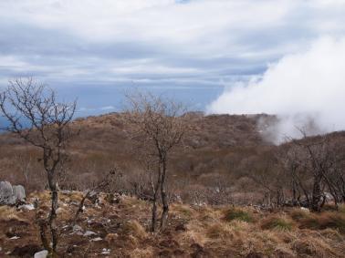 宿泊地(7:50)〜藤原岳休憩所(8:40/9:00)〜4合目(9:50/9:55)〜7合目(10:26/10:31)〜9合目(11:05)〜藤原山荘(11:37/12:00)〜藤原岳天狗岩(12:30/12:40)〜藤原山荘(13:00/13:15)〜9合目(13:45)〜5合目(14:20/14:25)〜藤原岳休憩(15:05/15:30)=近鉄桑名駅(16:45)