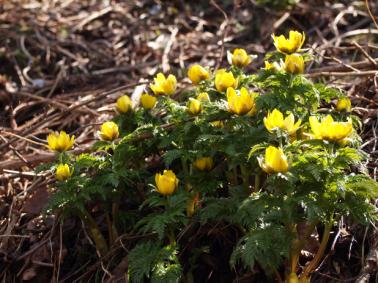 8合目辺たりから福寿草が沢山咲いていた。(植生保護がなされていた)
