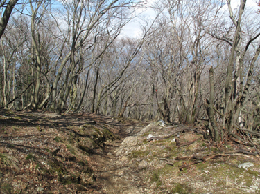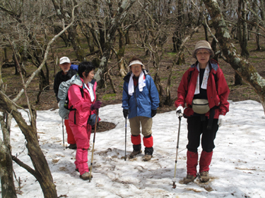 【避難小屋から天狗岩に至る山道の残雪】 |
