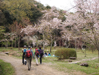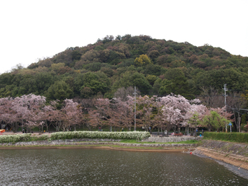 【畝傍山の麓で花見客がチラホラ】