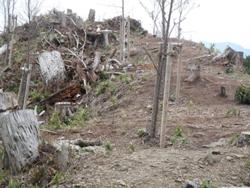 【奥千本では,古い大杉を伐採をして,桜を植樹】 |
