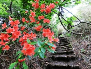 ![]() 【山躑躅の出迎え 厳しく長い登りの始まり】 |