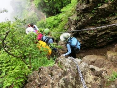 ![]() 【行者ヶ岳クサリ場】 登り下りで渋滞発生 |
