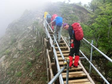 ![]() 【行者と新大日鞍部】 両サイド崩落箇所を梯子で進む |