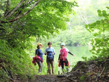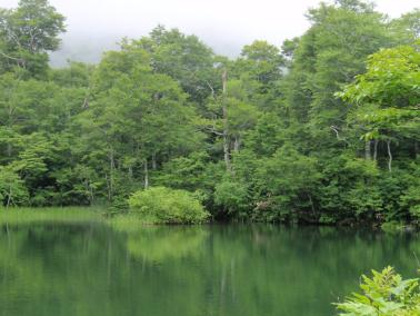 - 二日目に行った鎌池はぶなのグリーンシャワーでマイナスイオンがいっぱい。紅葉時がまたいいと言う。