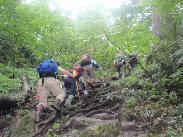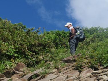 - 三日目もだめかと思ったが、神はそこまで見捨てていなかった。山頂に着く頃に青空が見えてほっとした。雨飾山は急登だが登りがいのあるいい山。