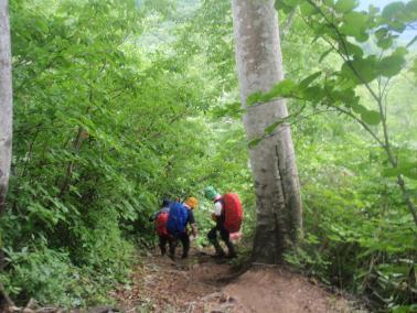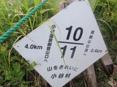 山荘(5:15)=雨飾山登山口(5:30)〜荒菅沢(7:10)〜笹平(8:40)〜山頂(9:30/10:00)〜笹平(10:20)〜荒菅沢(11:40)
