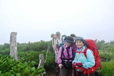 - 大岳までの縦走中は霧が発生し展望が得られなかったが、大岳ヒュッテに戻る頃に視界が開け、湿原の高山植物と八甲田の山々の風景を見ることができた。