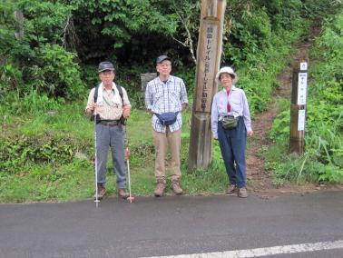 我孫子駅北口(5:00)=飯山、豊田IC=とん平駐車場(9:15/9:25)〜仏が峰登山口(9:55/10:00)〜小沢峠(11:35/11:40〜昼食(11:55/12:25)〜鍋倉山(13:45/14:00)〜黒倉山(14:15/14:20)〜筒方峠(14:50)〜関田峠(15:10)=民宿